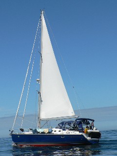 Hinter uns liegen 3 Tage mit zum Teil stürmischer Überfahrt durch die Biskaya. Wir sind 350 Seemeilen gesegelt und haben dafür 72 Stunden benötigt. Der Wetterbericht in la Rochelle sagte für diese Tage 3-5 Beaufort mit einer Windrichtung aus dem nördlichen Sektor voraus. Besser hätte die Vorhersage nicht sein können. Bei dem morgendlichen Hochwasser um 7 Uhr liefen wir in la Rochelle aus. Der Himmel war bedeckt, der Wind kam aus Nord und wehte mit knappen 3 Beaufort. Am Vormittig liess sich dann die Sonne sehen und wir hatten den ganzen Tag über schönstes Segelwetter. Gegen 17 Uhr gab es dann einen Knall. Unser Blick ging nach oben und dort sahen wir, dass sich unser Vorfall (das ist eine Leine, welches das Vorsegel - die Rollgenua - oben in der Mastspitze hält) gelöst hatte. Der obere Teil des Segels flatterte nun unkontrolliert im Wind und wir mussten schleunigst zusehen, das grosse Segeltuch zu bergen, bevor es alleine vollständig runter käme und ins Wasser rauschte. Stefan blieb am Ruder und ich spurtete kurz entschlossen auf das Vorschiff und zottelte das Segel auf das Deck. Hilfreich war, dass der Wind nur um die 3-4 Beaufort bliess. Nun standen wir erst einmal ohne Vorsegel da. Da unser Boot mit einem zweiten (Ersatz)- Vorfall ausgerüstet ist, versuchten wir nun das Segel wieder zu setzen d.h. die Rollgenua in eine Nut einzuführen. Aber nach meheren Versuchen stellten wir fest, das dafür der Wind doch zu stark war. Also musste eine andere Lösung her. In Vorbereitung auf die Überfahrt durch die Biskaya hatten wir in La Rochelle unser mobiles Kutterstag gesetzt. An diesem Kutterstag kann man ein zusätzliches Segel, zum eigentlichen Vorsegel, setzen. Wir hatten die Überlegung gehabt, bei Starkwind oder Sturm an diesem Kutterstag unser neues Sturmsegel hoch zu ziehen, sofern dies nötig gewesen wäre. Das nun in so kurzer Zeit das Kutterstag so hilfreich sein würde, hatten wir in la Rochelle noch nicht geahnt. Also holten wir unser Kuttersegel aus der Vorschiffskoje und setzten dieses. Das Kuttersegel ist zwar bei weitem nicht so groß wie unsere Rollgenua, aber es war besser als gar nichts.