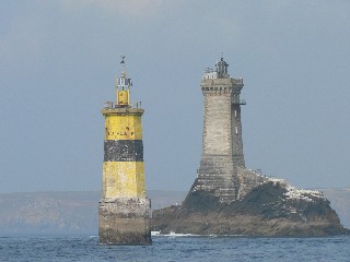 Schade das seit Tagen die Sicht äußerst diesig ist. Auf dem Weg nach Camaret umrundeten wir die nordwestliche Küste von Frankreich und diese ist gesäumt mit vielen monumentalen Leuchttürmen. Leider konnten wir sie nur durch einen Dunstschleier sehen. Die See war platt wie eine Flunder und die zahlreichen Yachten, die mit uns um das nordwestliche Kap Frankreichs in die Biskaya wollten, mußten wie wir, diese schöne Strecke unter Motor fahren. Camaret-sur-Mer ist ein kleines hübsches Hafenstädtchen mit einem gut bestückten Fischladen, einer alten Kirche, die mitten im Hafengebiet liegt und einer belebten Hafenpromenade. Besonders reizvoll sah das Hafengebiet am Abend mit seiner Beleuchtung aus.