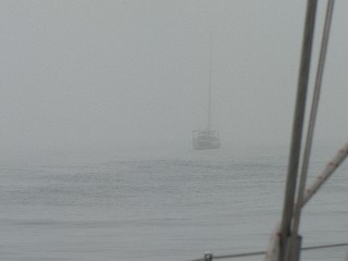 Als wir uns der portugisischen Stadt Viana do Castelo näherten, um genau zu sein, uns in der Hafeneinfahrt befanden, riss der Nebel auf. Die Stadt lag außerhalb des Nebelfeldes. Und das sah beeindruckend aus. Vor uns lag die Stadt in der Sonne und hinter uns die Nebelbank. Da die schwedische Yacht kurz nach uns die Hafeneinfahrt passierte, sahen wir sie, wie den Fliegenden Holländer aus den Nebelschwaden entsteigen. Sie erzählten uns später im Hafen, dass sich in der letzten Woche sage und schreibe dreimal ein Fischernetz in ihrer Schraube verfangen habe. Einaml mussten sie die Küstenwache alamieren, damit Taucher die Schraube wieder von dem Netz befreit konnten. Das dauerte zehn Stunden. Einmal ist ihnen dieses Malör direkt in der Hafenbucht von la Coruna passiert! Ein anders Mal mitten in der Nacht auf offener See. Zum Spaß meinten wir, sie zukünftig immer als "Netzfänger" vorfahren zu lassen, um dann in ihrem Kielwasser sicher vor Nezten zu sein. Die Schweden, die wir noch öfter trafen, nahmen es gelassen.