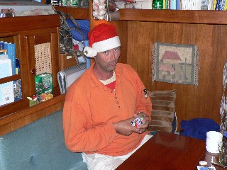 Gestern, puenktlich zum Heiligabend, nahm der Wind ab auf E 5, die Wolken verzogen sich und die Sonne kam raus. Das besserte unsere Stimmung gleich auf. Hinzu kam, dass Martina erstmals um 16.30 Uhr UTC (17.30 Uhr deutscher Winterzeit) ueber Kurzwelle an einer Funkrunde des Amateurfunkvereins INTERMAR teilnahm, die Yachten mit den neuesten Wetterberichten versorgen und uns mitteilten, dass der Wind noch mehr abnehmen würde und wir in den naechsten vier Tagen mit NE 3-4 Beaufort rechnen koennten.