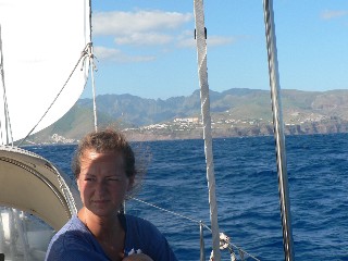 Nachdem wir unsere Verabschiedungsrunde absolviert hatten, sagten wir auch Ivan und Madelaine von der MAIDA lebe wohl. Ivan bekam von uns eine selbst gemalte Kanarische Flagge und mit Madelaine tauschten wir unsere E-Mailadressen aus. Ihr mussten wir versprechen, ihr aus der Karibik eine Mail zu senden, sobald wir dort angekommen seien und alles in Ordnung sei. Anderenfalls wuerde sie einen Suchtrupp losschicken. Gegen 18.30 Uhr warfen wir die Leinen los.