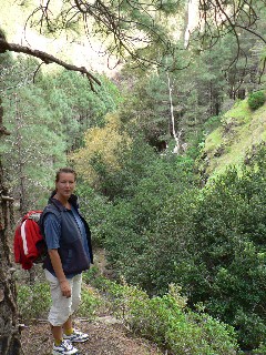 Gestern war Wandertag! Die ALDJERINYA hatte noch einiges an Bord zu tun aber Peter und Olga von der ROSE und wir sind mit dem Bus in die Berge. Eigentlich sollt es von dort eine Wandertour von cira 4 Stunden werden. So stand es auf der Wanderkarte. Wir verliefen uns aber, versuchten zunächst vergebens uns ueber ein Berg zu schlagen, musssten schliesslich denselben Weg zurück und hatten abends das Glück, trampenderweise wieder zum Hafen zu gelangen. Jedenfalls war die Natur eindrucksvoll, fuer Wanderer muss Gomera ein wunderbares Revier sein. Wir sammelten Salbei, Minze, Thymian, Pilze und fanden sogar noch einen Avokadobaum mit reifen Früchten. In den Gärten des einzigen Dorfes auf unserem Wandertag sahen wir zudem Bananen, Apfelsinen, Zitronen, Mangos, Goaven und Papayas.