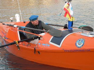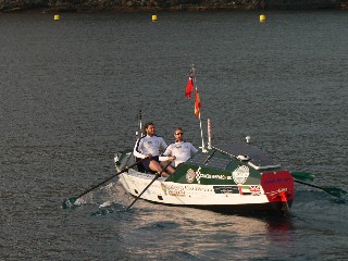 Einen Tag später legen die vier Ruderboote morgens um 08.00 Uhr ab. Wir winkten alle begeistert und wuenschen ihnen alles Gute. Vier Monate soll ihre Ueberfahrt wohl dauern. Abend allerdings werden die drei Einmannboote wieder von der Guardia Civil in den Hafen geschleppt, das Zweimannboot war schon ausserhalb der 30-Meilen-Zone und ist den Behoerden entkommen.