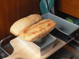 Stefan backt gerade unser erstes Brot, dann wird er schwimmen gehen! Seit Tagen kommt in unsere Bucht ein Ausflugsschiff mit ca 50 Badegaesten. Scheinbar sind alle Badenden wieder sicher an Land zurueck gekommen. Nirgendwo gab es einen Aufschrei: „ein Hai“ und kein Notartzwagen war bislang zu sehen, so das Stefan jetzt Mut gefasst hat und sich auch in die Fluten stuerzt.