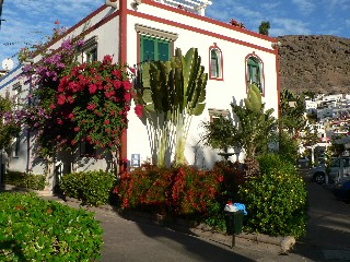 Puerto Mogan ist sehr touristisch. Aber vermutlich ist der komplette Sueden von Gran Canaria so gepraegt. Wir haben einen Liegeplatz in der hintersten Ecke des Hafens bekommen und das war gar nicht so einfach, ueberhaupt einen zu bekommen. Die gesammten Haefen auf Gran Canaria sind auf Grund der Atlantik-Regatta ARC, die erst am 26. November von der Insel startet, fast komplett belegt. Ueber Bekannte hatten wir schon versucht, uns einen Liegeplatz in Mogan reservieren zu lassen. Das klappte nicht. Ueber Email haben wir es dann versucht, mit dem Hafenbuero Kontakt aufzunehmen. Das klappte auch nicht. Also blieb uns nichts anderes uebrig, als auf Verdacht in den Hafen einzulaufen. Und wir hatten Glueck! Die nette Hafenmeisterin kannte schon, durch unsere Email, unseren Bootsnamen und fuer die kommenden 6 Tage hatten wir nun einen Liegeplatz in Mogan.