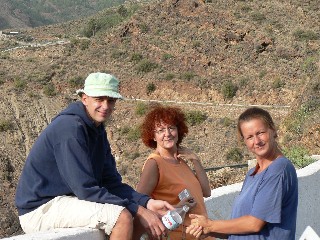 Meine Mutter, mein Bruder und Hans von der BUTT sind heute zusammen nach Rostock zurueck geflogen. Auch dieses Mal hatten wir uns einen Wagen geliehen. Und wir muessen sagen, der erste Eindruck, den wir von der Insel hatten, hat sich sehr veraendert. Die dritte Autotour war noch beeindruckender. Von kahlen Bergen fast keine Spur und eine Blumen und Kakteenpracht, toll. Vermutlich hat der Regen der letzten Wochen dazu beigetragen, dass es jetzt sogar die Berge fast gruen sind. Aber auch die winzgen Ortschaften in den Bergen waren von ganz anderem Charakter als die im Sueden der Insel. Wenn wir nur den unteren Teil der Insel gesehen haetten, waeren wir relativ enttaeuscht von Gran Canaria weggesegelt.