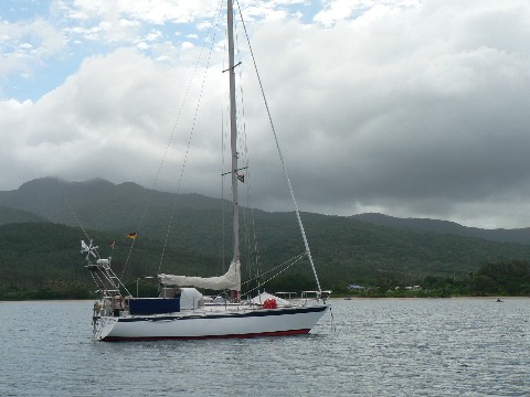 Alle drei Männer waren sehr freundlich. Sie waren etwas schüchtern, halfen uns aber tatkräftig beim Ausfüllen aller Papiere.Und das dauerte eine knappe dreiviertel Stunde. Zum Schluß wurde alles gestempelt, 80 US Dollar eingestrichen und schon waren wir ordnungsgemäß in Vanuatu einklariert.