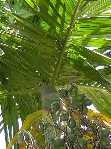 Der Betelnuss Baum. Die Betelnusspalme heißt botanisch Areca catechu, sie gehört zur Familie Palmae.