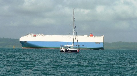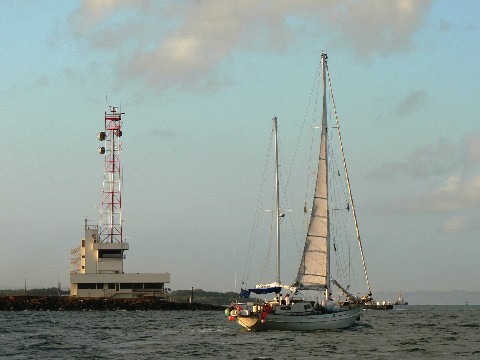 Vormittags kam wie zugesagt ein Lotsenboot mit einem Beamten des Admeasurer Office. Er wollte aber gar nicht an Bord, sondern rief uns nur zu, in einer halben Stunde sollten wir im Panama Canal Yacht Club sein und wir könnten die gelbe Flagge einholen. Das schien ja gut weiter zu gehen. MULINE ging schon zweimal durch den Panamakanal und wurde dementsprechend bereits von der Kanalbehörde vermessen. Wir hatten aber Bedenken, ob nicht unser nachträglich angebauter Geräteträger, der das Boot etwas länger macht und von dem wir am Vortag im Admeasurer Office nichts erzählt hatten, eine neue Vermessung erforderlich machen würde. Die kurze Besichtigung von außen schien dem Beamten aber schon gereicht haben.....