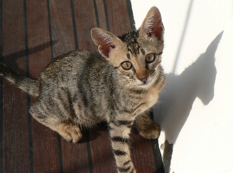 Vermutlich wurde unser Kater im November oder Dezember 2008 geboren . Genau wissen wir das aber nicht. Genauso wenig können wir sagen, wo er geboren wurde. Vielleicht im Oman, in Salalah, oder, der kleine junge Kater kam mit einen der vielen Schiffe im Hafen von Salalah an, von irgendwo her. Vielleich gehört er aber auch dem Bruder eines saudischen Scheichs, der mit seiner millionenschweren Motoryacht keine 30 Meter von unserer MULINE entfernt in Salalah an der Pier lag.