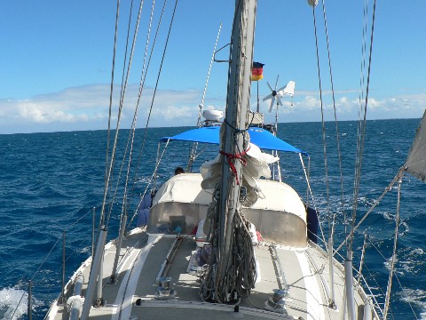 Wir ließen Ua Pou in unserem Kielwasser und segelten gemeinsam mit der YAGOONA in Richtung Südwesten. Dort wartete schon eine neue Herausforderung auf uns. Das Tuamotus Archipel mit seinen zahlreichen Korallen Atollen, Riffen und seinen etwas heiklen Riffpassagen. Tagelang hatten wir schon von nichts anderem mehr gesprochen. Wir durchstöberten zusammen mit der YAGOONA unsere nautische Literatur und suchten nach dem Atoll mit der am einfachsten zu befahrenden Riffpassage. Unsere Wahl viel auf das Atoll Kauehi. Aber erst einmal lagen knappe vier Tage Segeln vor uns.