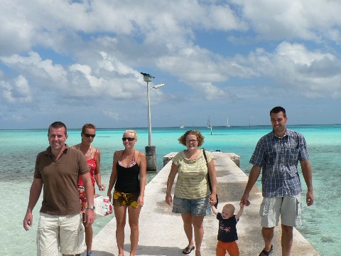 Marc, Martin und Stefan hatten ihre Anker abgetaucht, alle lagen gut und dann ging es auch gleich zum ersten Landausflug. Personen von links nach rechts: Marc, Martina, Svenja, Dirma, klein Boaz und Martin.
