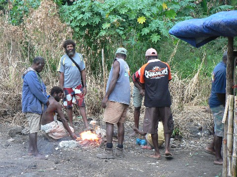Mary Lous Bruder bereitete zusammen mit zwei Kumpels die Kava vor. Das Kava-Getränk wird aus der frischen Wurzel der Pfefferpflanze hergestellt. Anders als auf Tonga und Fitschi, wo dieses Getränk aus der getrockneten Wurzel zubereitet wird. Mary Lous Bruder zerteilte die Wurzel in kleine Stücke und anschließend wurden diese durch einen Fleischwolf gedreht. Heraus kam ein grauer Pflanzen-Matsch, der sehr erdig roch und später mit ein wenig Wasser verdünnt wurde. So entstand ein beruhigendes, nichtalkoholisches Getränk, welches uns in Sekundenschnelle die Lippen und Zungen taub machte. Es schmeckte ein wenig würzig und roch zudem etwas nach meiner Pflanzenhaarfarbe Henna.