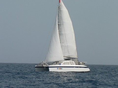 Allmählich kam ein kleines Lüftchen auf. Wir setzten zuerst ein Stützsegel und später konnten wir dann auch manchmal segeln. Der Wind lieb aber vorerst instabil, so das wir immer wieder dazu motoren mußten. Im Vorhinein hatten wir uns alle untereinander auf eine Richt- und Mindestgeschwindigkeit geeinigt. Das langsamste Boot der Gruppe unter Motor, in dem Fall die MULINE, gab die Geschwindigkeit vor aber eine Mindestgeschwindigkeit von 5 Knoten sollte erhalten bleiben. | ||||||||||||||||||