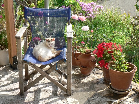 Rosamunde auf einem ihrer Lieblingsplätze in der Sonne.