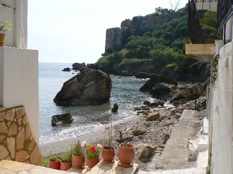 Nach dem Besuch im Kloster ging es zurück in den Ort und mit dem Bus zu unseren Freunden Traudl und Friedel. Sie hatten sich vor Jahren hier in der Umgebung ein Grundstück gekauft und verbringen nun ein Großteil des Jahres hier in ihrem selbstgebauten Haus. Es liegt knappe 10 Kilometer von Koroni entfernt an einem Hang mit einem phantastischen Blick auf den Messenischen Golf.