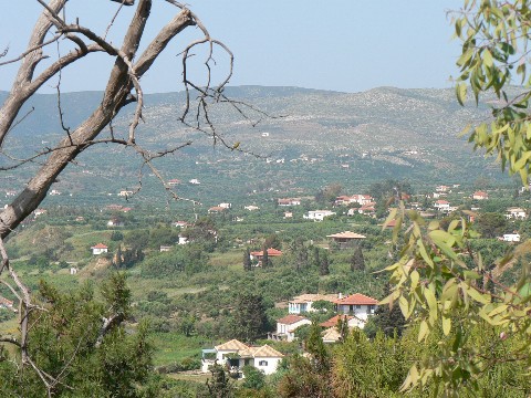 Die westliche Seite des mittleren Fingers der Peloponnes. Auf dem mittleren Finger erstreckt sich das Taygetos Gebirge das bis 2400 Meter in die Höhe steigt. An den Flanken des gebirges waren zahlreiche Dörfer zu sehen.