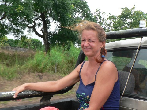 Alle Taxen auf Santa Cruz sind Pick-up´s. Wenn das Taxi innen voll ist, setzt man sich einfach draußen auf die Ladeplattform. Mit 70 Stundenkilometern ging es dann über die sehr guten Straßen nach Ayora. Vermutlich habe ich mir dabei die Erkältung zugezogen.