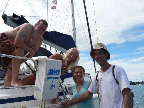Hier die Crew von der BAHATI. Nat ( vorne, mit der roten Kappe) ist mit seinem Sohn und seinen zwei Kumpels unterwegs.