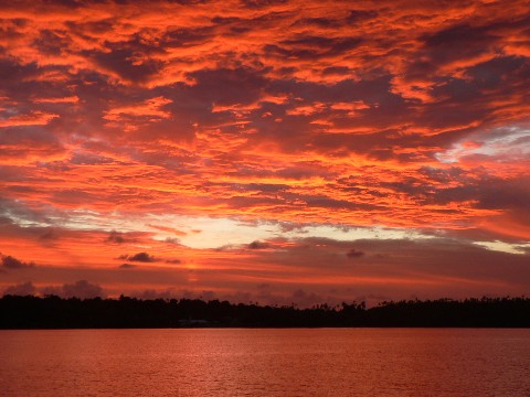 Der Sonnenuntergang auf unserem letzen Ankerplatz.
