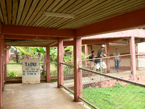 Der Wartesaal in der Ambulanz. Da in Tonga verlängertes Wochenende war, war die Ambulanz entspechend gefüllt. Viele Kranke kamen gleich mit samt ihrer ganzen Familie. Und Stefan wartete geduldig bis er an die Reihe kam.