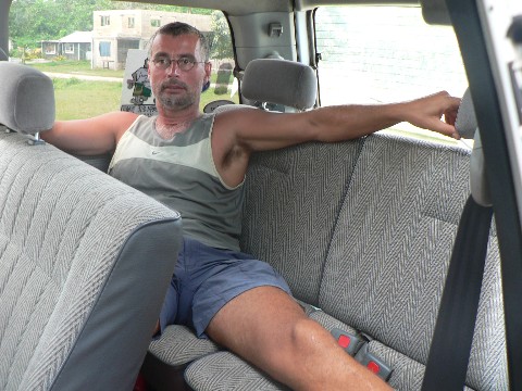 Ok. Die Ärztin sagte Bein hoch legen und wenig laufen. Dann ging es los zu einer kleinen Inselrundfahrt. Die ROTOR, Geza und Eva luden die HAFSKIP, mit Joost und Ilse und uns zu dieser netten kleinen Inseltour ein. Interessant ist, wie wir dazu gekommen sind. Geza hatte vor drei Tagen 150 Liter Diesel in seine leeren Kanister getankt. Dann stellte Geza am nächsten Tag aber fest, dass dieser Diesel eine Macke hat. Entwerder war er verschmutzt oder er hatte ein Bakterium. Geza zog bei uns eine Dieselprobe, denn auch wir hatten Diesel in unsere Ersatzkanister getankt. Allerdings hatten wir unseren Diesel bei einer anderen Tankstelle gezapft. Unser Diesel war klar. Nun stand Geza mit 150 Liter nicht brauchbaren Diesel da. Die Tankstelle nahm den Diesel nicht zurück und so kam er mit einem Taxifahrer ins Geschäft. Dieser hörte sich Gezas Problem an und Geza schenkte ihm seine 150 Liter verunreinigten Diesel. Der Mann war überglücklich und lud Geza zu einer Inselrundfahrt ein. Geza sah sein Großraumtaxi und kam auf die glänzende Idee, uns alle zu einer Spritztour einzuladen. Klasse!