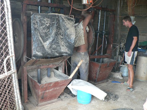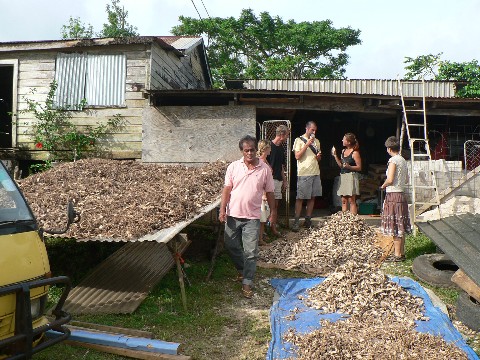 Dann ging es weiter zur nächsten Attraktion. Eine Kava Fabrik. Ich hatte schon einmal, im Zusammenhang mit dem Königstreffen in Raiatea, von der Pfefferpflanze und von deren getrockneten Wurzel berichtet. Aus dieser getrockneten Wurzel wird dann das Kava-Pulver gewonnen, dass man dann mit Wasser anmischt. Fertig ist das berauschende Getränk. Der Besitzer dieser Anlage erzählte uns, dass er dieses Pulver auch nach Deutschland verschickt. Dort soll es gegen Depressionen und zur Schmerzlienderung eingesetzt werden. Das hört sich ja ganz fortschrittlich an.