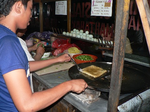 Links im Bild wird eine Art Gemüsefladen im heißen Fett gewendet. Da wir schon im Warung gegessen hatten und uns zum Nachtisch die fritierten Bananen gegönnt hatten, mußten wir diese Leckerei auf ein anderes Mal verschieben.