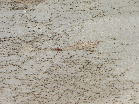 Natürlich steckte Martina ihren Kopf gleich in den Sand und ging auf Muschelsuche. Zur übergrossen Freude von Martina gab es am Strand eine Vielzahl unterschiedlichster Muschelarten, so dass unser Boot jetzt drei weitere Kilo schwerer ist. Es gab aber nicht nur Muscheln am Strand zu sehen sondern auch viele kleine Krabben, die den Strandsand zu ganz kleinen Kügelchen formten.