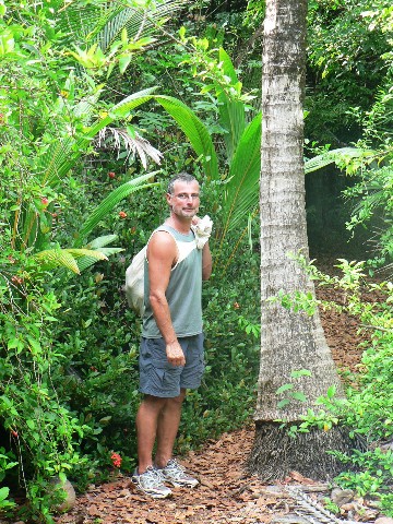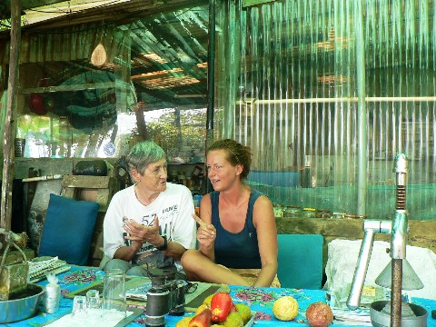 Ich fragte Gerda, ob sie sich das so vorgestellt habe, ihr Robinson-Leben. Ein klares "NEIN" war die Antwort. Das tägliche Überleben in der Wildnis, erfordere sehr viel Kraft, sagt sie. Angefangen damit, kleine Flächen dem Urwald abzugewinnen, um Nutzbäume, wie Avocados, Brotfruchtbäume, Orangen, Pampelmusen anpflanzen zu können, die Wege frei zuhalten, die nach kürzester Zeit wieder zugewuchert sind oder Trinkwasser aus der brackigen Wasserquelle zu gewinnen.