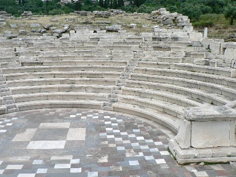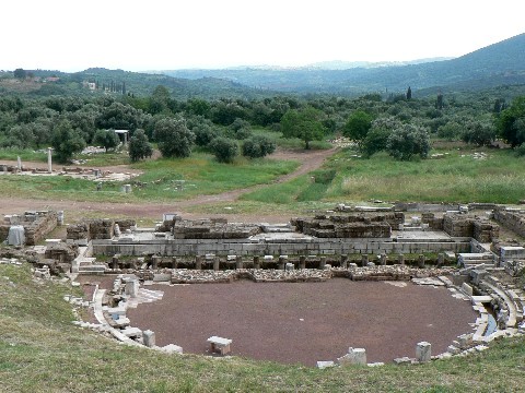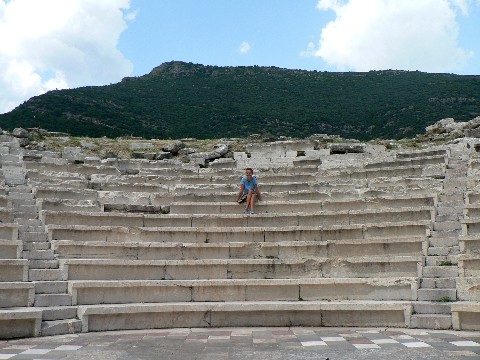 Eine weitere sehr gut erhaltene Anlage ist die eines Theaters. Dieses Theater soll sich im Zenrum der Stadt befunden haben. Der Boden ist mit Mosaiksteinen ausgelegt.