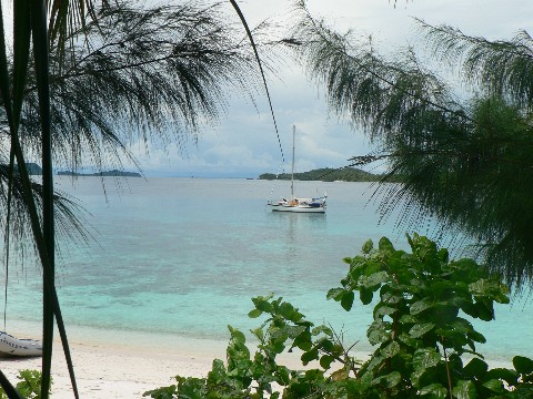 Wir fanden zwei Ankerplätze abseits dieser beiden Inseln und haben keine andere Touristen getroffen. Selbst Segelschiffe wie unsere MULINE kommen nur sehr selten in diese Region und so waren wir, zusammen mit der YAGOONA, Hauptinteresse der Inselbewohner. Wir ankerten beidemale in der Nähe eines kleinen Dorfes und da war der Weg nicht weit, dass wir ständigen Besuch an unseren Booten hatten. Manchmal kamen sie mit Fisch zum Verkauf und manchmal nur um zu schauen.