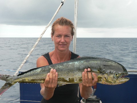Nach langer Zeit ist uns mal wieder ein Mahi Mahi, eine Goldmakrele, an die Angel gegangen.