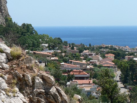 Auf unserem Spaziergang durch den Ort, entdeckten wir auch einen Weg der uns etwas in die Höhe leitete. Einige Häuser am Rande des Ortes waren in die Bergflanken hineingebaut und dorthin gab es auch eine Strasse. Wir suchten uns einen strategisch gut Platz aus, von dem wir Mondello und die Bucht gut überblicken konnten.