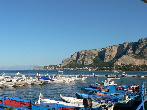 Im Hintergrund ist das Bergmassiv Monte Pellegrino zu sehen