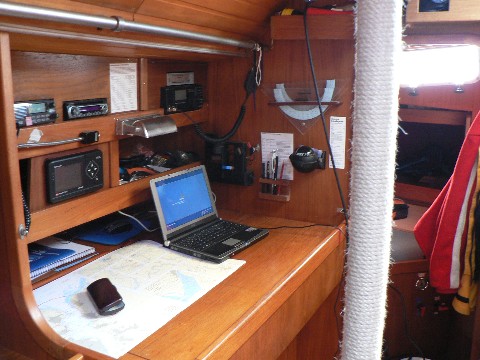 Der Kartentisch auf der Steuerbordseite und gegenüber....