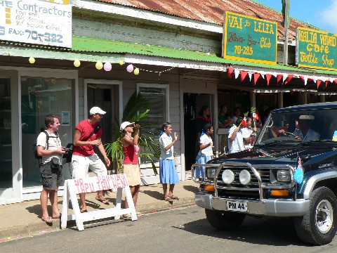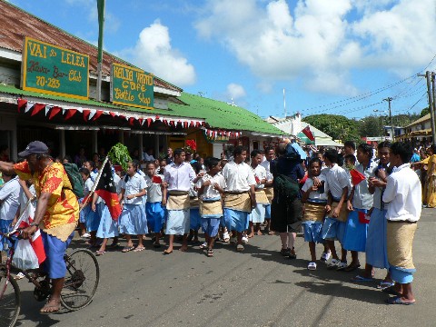 Ganz Neiafu war in Aufregung. Die Kinder hatten schulfrei und alles was laufen konnte, war auf den Beinen. Aus großen Musikboxen ertönte moderne Pop-, Rock und Hardrockmusik. Selbst ältere Damen schaukelten und wippten im Rhythmus dieser Klänge. Von tonganischer Heimatmusik, abgesehen von einem Lied mit Hochrufen auf den König, war hier keine Spur.