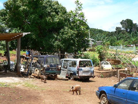 Das hier ist eine Tankstelle. Dort werden wir uns vor unserer Abfahrt auch noch mit Hilfe unserer Kanister versorgen. Der Liter Diesel kostet an dieser Tankstelle übrigens 2,86 Tongadollar, das sind in etwa 1,10 Euro
