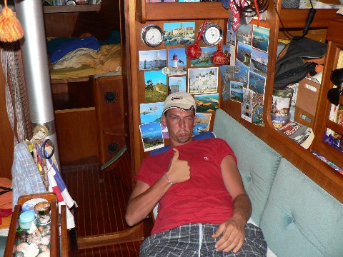 Für Eike wurden das die ersten zwei Nächte auf einer kleinen Segelyacht in seinem Leben. Im Vergleich zu meinen Angängen hielt er sich prächtig. Meine ersten Segeljahre waren von ständiger Übelkeit geprägt, einschließlich der Gang zur Reling. Bei Eike zeigte sich nur eine leichte Müdigkeit