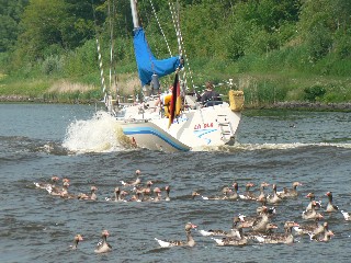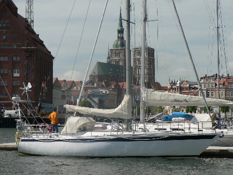 Kiel ist für Segler etwas umständlich. Die Innenstadt liegt weit von den Häfen entfehrnt. Mindestens 30 Minuten Fußweg muß man einplanen, wenn man in das Zentrum will. Für Großeinkäufe bleibt da nur der Rückweg mit dem Taxi. Kiel hat auf den ersten Blick nichts Erwähnenswertes, wahrscheinlich müßte man etwas mehr Zeit mitbringen um die Besonderheiten zu entdecken.Wir hatte noch kleinere Probleme an Bord und die wollten wir hier erledigen. Außerdem wollten wir hier noch die Voreigner von unserer MULINE treffen, welche in den 80ger Jahren für drei Jahre um die Welt segelten. Und dieses Treffen war für uns sehr bewegend. Dieses Pärchen, beide jetzt schon an die 70 Jahre, saß nun vor uns mit all ihren großen Segelerfahrungen, welche wir noch machen wollen und werden. Ganz unaufgeregt erzählten sie von ihrer Reise. Und wir löcherten sie mit unseren unzähligen Fragen.Wir erfuhren auch, daß bereits eine Familie mit vier Kindern drei Jahre vor ihrer eigenen Weltumsegelung mit diesem Schiff um dieWelt gesegelt ist. Ich glaube mitlerweile, daß MULINE auch ohne unsere Navigation den Weg um den Globus finden würde. Dann erzählten sie uns bei Kaffe und Kuchen und in der Plicht unserer und ihrer MULINE, daß sie auf den Tag genau vor17 Jahren, am 8.Juni 1989, von ihrer Weltumsegelung zurück gekommen waren.Wir bemerkten, daß dieses Treffen nicht nur für uns, sondern auch für sie etwas Besonderes war. All die Erinnerungen die wir mit unserer neuen Reise wieder in ihnen weckten, ließen die beiden immer mehr interessantes von ihrerer großen Tour berichten. Es waren zwei wunderbare Nachmittage mt ihnen.