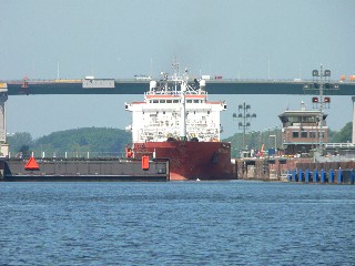 Allmählich bereiteten wir uns auf die Durchfahrt im Nord-Ostsee-Kanal (NOK) vor. Der Yachthafen in Holtenau liegt unmittelbar neben den Schleusen. Von unserem Liegeplatz aus konnten wir hautnah das Ein- und Auslaufen der riesigen Kontainer-und Frachtschiffe beobachten. Es war wie im Taubenschlag. Wir suchten unsere Bücher herraus, die uns Infomationen zu den einzelnen Lichtsignale für die Schleuseneinfahrt und der Kanalfahrt geben konnten.Wir kleinen Yachties zusammen mit der Großschifffahrt auf engen Raum, das ist schon Spannend .