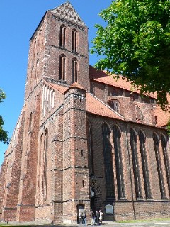 Heute war Hafentag angesagt. Wir hatten schon oft gehört, daß Wismars Altstadt nach der Wende wieder zu neuem Glanz gefunden hat. Und das können wir bestätigen. Wismar hat zwar keine schöne Silhouette vom Wasser aus wie Stralsund und auch keinen schönen Hafen aber die Altstadt ist überragend. Der überwiegende Teil der alten Häuser ist bereits restauriert und die Kirchen stehen kurz vor ihrer Vollendung. Wismar ist in seiner Altstadt sehr lebendig. Und das unterscheidet es von Stralsund. In der Altstadt von Stralsund wohnt nur ein Bruchteil von Einwohnern und auch die Vielfalt an kleinen unterschiedlichen Geschäften, Schulen, Kindergärten und anderen sozialen Einrichtungen fehlt in der Stralsunder Altstadt. Wer den Stiel der Hansestädte mag, sollte diese Stadt nicht auslassen zu besuchen. Hier bekommt man zahlreiche Backsteingotik geboten und neu restaurierte Bürgerhäuser mit ihren wunderschönen und immer wieder unterschiedlichen Giebeln zu sehen.