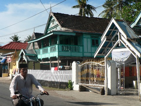 Tanaberu scheint auf Grund des Bootsbaues etwas wohlhabender zu sein. Die Häuser sind gut gepflegt und sind zumeist aus Holz und Beton gebaut. Und die Indonesier beweisen Mut zur Farbe. Pink-Töne, Rosa oder Hellblau, Lila, Gelb oder Neongrün sind überall in den Straßenzügen zu sehen. Das witzige an der Sache ist, dass die meistens Häuser mit derselben Farbe innen gestrichen sind. Eine richtige Privatsphäre scheinen sie auch in diesem Ort nicht zu haben, denn überall stehen die Türen offen und wir konnten bis in die Schlafzimmer oder Wohnzimmer hineinsehen.