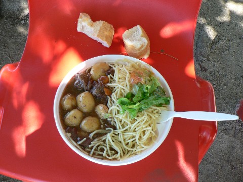 Die Siegerehrung. Anschließend gab es für alle Beteiligten ein Mittagessen. Und wir konnten es kaum glauben, es gab Schweinegulasch mit Nudeln und Kartoffeln und dazu noch einen grünen Salat mit Tomaten. Deutscher hätte das Essen nicht sein können. Und es schmeckte zudem noch richtig gut.