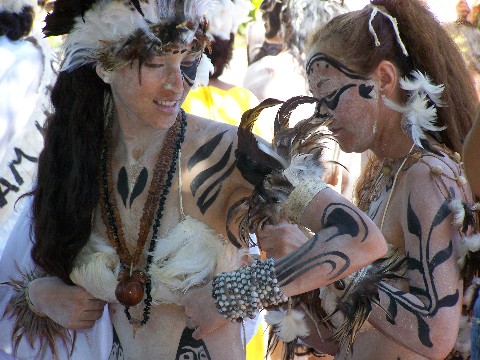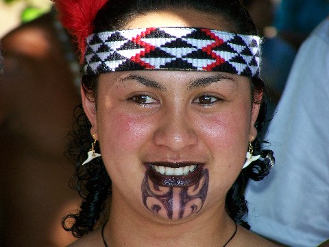 Die Maoris aus Neuseeland. Die Zeichnungen am Kinn und um die Nase herum sind hier bei den Teilnehmern zwar nur noch aufgemahlt aber in früher Vergangenheit waren das noch Tätowierungen.