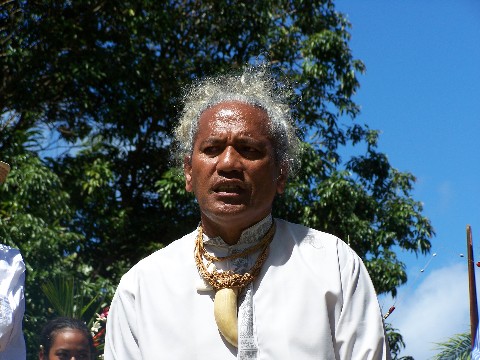 Abends stand der Marche sur le feu auf dem Programm. Auf einer feierlich geschmückten Grasfläche war tags zuvor ein Bereich von circa 4 mal 10 Metern die Erde ausgehoben und darin mit viel Holz und trockenen Kokosnüssen ein riesiges Feuer gemacht worden. Darauf kamen dann dicke Wackersteine. Rundherum standen Fackeln und für die königlichen Delegationen Stuhlreihen. An diesem Abend waren auch zum einzigen Mal im Beisein der Könige, Priester und Häuptlinge viele einheimische Besucher anwesend. Es dauert um die zwei Stunden, bis die letzte Delegation eingetroffen war. Dann begann die auf alten Traditionen beruhende Zeremonie des Feuergehens, geleitet durch einen der ranghöchsten polynesischen Chefferies. Was das genau ist, darüber sind wir uns trotz einiger Gespräche und vieler Fragen noch nicht einig. Jedenfalls gab es genaue Anweisungen. Beim Gang über das Feuer, also über die auf der Glut liegenden Wackersteine, durfte man nicht zurücksehen, mit keiner über das Feuer gehenden Person reden. Während der Zeremonie zu fotografieren oder zu filmen war verboten. Personen, die an diesem Tag Alkohol getrunken hatten, war der Gang über das Feuer verboten, ebenso Schwangeren. Frauen, die ihre Periode hatte, mussten zunächst den Cherfferie fragen, ob sie teilnehmen dürften. Ob das eine Dame machte, konnten wir nicht beobachten. Nachdem zunächst der Chefferie mit seinen Helfern mehrmals die Wackersteine überquert hatte, waren die königlichen Delegationen an der Reihe. Einige gingen tatsächlich mutig und geschlossen über das Feuer. Anschließend war das Volk zugelassen und viele nahmen die Gelegenheit war, auch Geza, der allerdings erst anderentags merkte, dass er eine wenn nur kleine Brandblase hatte.