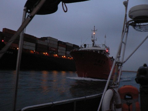 Wie immer waren wir unter Motor die langsamsten und so überholten uns nicht nur die Großen Frachter sondern auch die acht Segelboote, die mit uns in der Passage waren. Allerdings bekamen wir auch so Fotos von uns im Kanal.