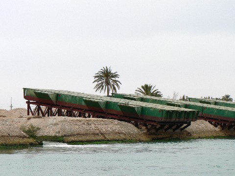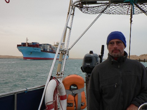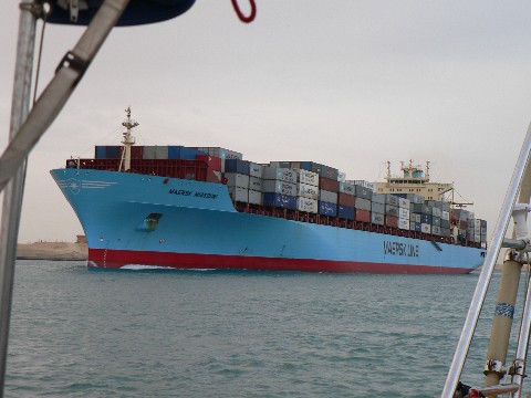 Der Suezkanal ist etwa 163 Kilometer lang. Die Mindestbreite der Kanalsohle misst 160 Meter und Schiffe bis zu 20 Meter Tiefgang und 150 000 Tonnen Gesamtgewicht können den Kanal passieren. Es gibt keine Schleusen, da der Kanal zwei Orte in Meereshöhe verbindet und dazwischen keine Erhebungen sind. In die Kanaltrasse wurden der Mensalesee, der Timsahsee und die Bitterseen, heute sind sie ein zusammenhängendes Gewässer, eingeplant. Der überwiegende Teil des Kanals ist auf eine einzige Fahrrinne mit mehreren Ausweichstellen beschränkt. Zweispurige Fahrrinnen befinden sich in den Bitterseen und zwischen El Kantara und Ismailia. Parallel zur gesamten Kanalstrecke verläuft am Westufer eine Eisenbahnlinie. Allerdings haben wir auf unserer passage keinen einzigen Zug sehen können.