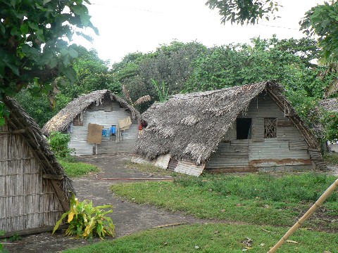 Die meisten der Hütten waren aus Bambus und Palmenblättern gefertigt. Das Dort sah erstaunlich gepflegt aus.