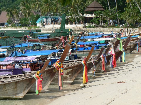 Im Jahre 2004, als der Tsunami durch die Insel rollte, starben hier über 600 Menschen und viele Verkaufstände, Hotels, Pensionen wurden einfach weggeschwemmt. Davon ist kaum noch etwas zu sehen. Der kleine Ort auf der Insel platzt förmlich aus allen Nähten. Phi Phi Don ist eine kleine quirlige Partyinsel. Und auch dem konnten wir etwas abgewinnen.